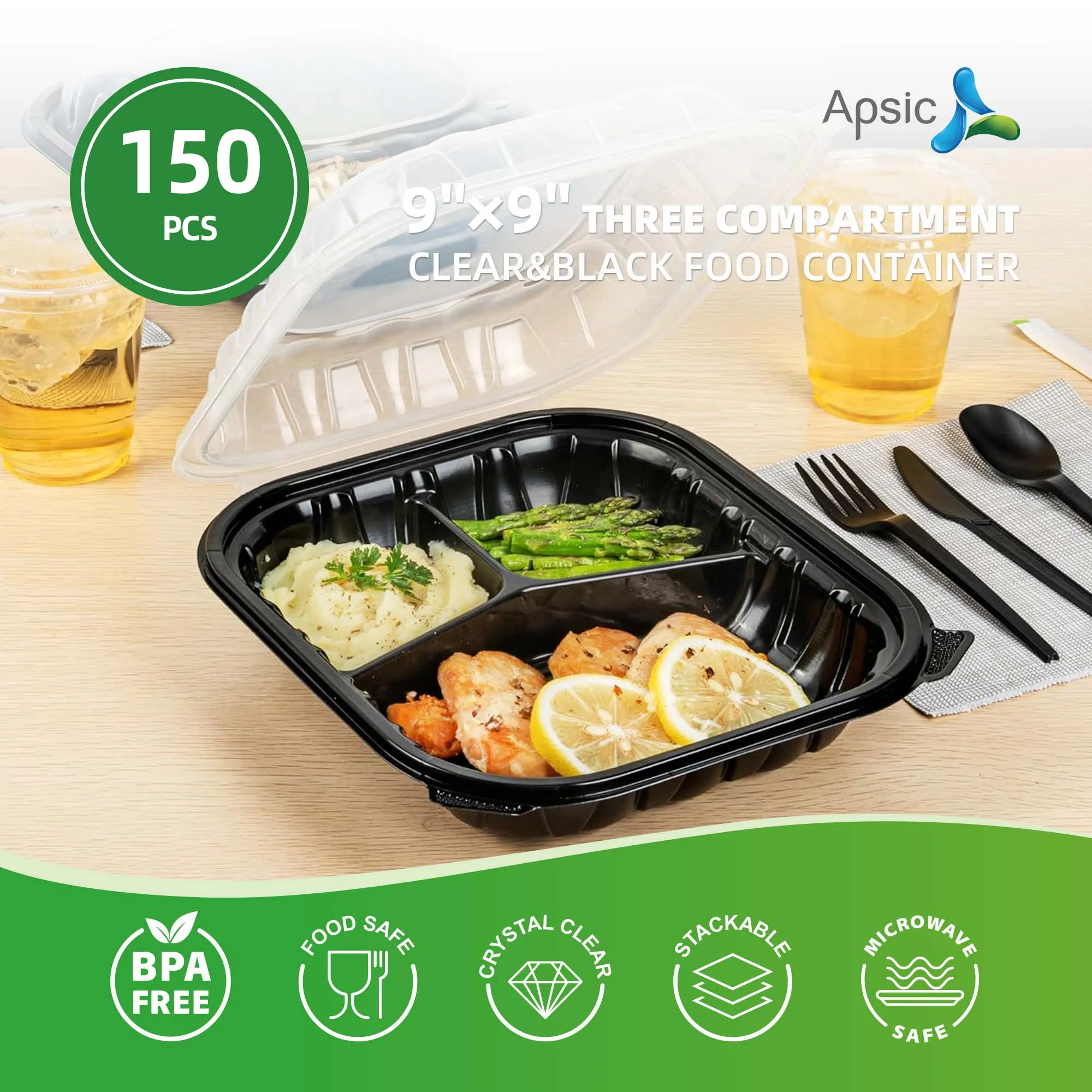 Be the first to review “9×9 Three Compartment Clear&Black Food Container(150pcs)”