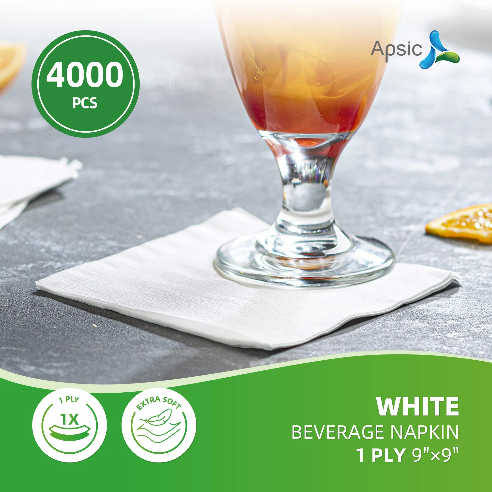 White Beverage Napkin 1PLY 9×9(4000pcs)